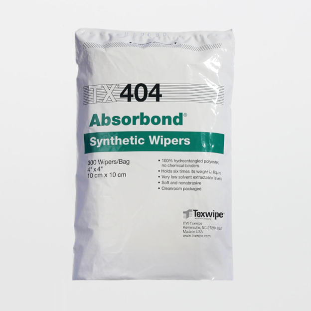 ITW Texwipe TX404 Absorbond is the wiper of choice for critical wiping applications where softness, non abrasiveness and very low ex-tractable levels of nonvolatile residue are essential. Absorbond is made of 100% hydro-entangled polyester. The hydro-entanglement process uses jets of water to mechanically entangle the fibers, eliminating the need for chemical binders. Even though Absorbond contains no surfactants, its absorptive capacity is five times its weight. This is due to the density of Absorbond’s fiber structure, which allows for the absorption of liquids through capillary action.